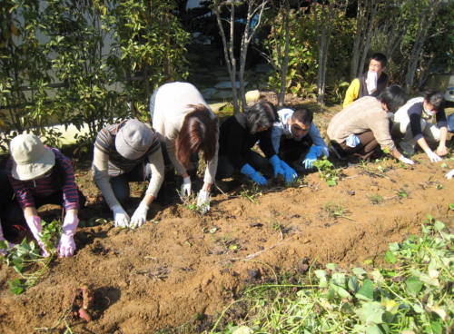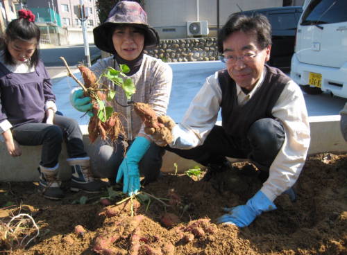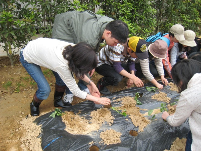 | こうやって植えるんです。 さつまいも沢山な〜れ! |