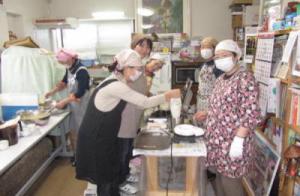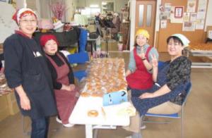 4月22日の東日本大震災支援コンサートに出品するドーナツを作る銀河メンバーと、応援に来てくれた「コーラスさざなみ」のみなさん