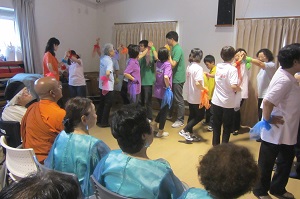 ブラックシアターを真近で見ていただきました 平生の活動風景です 銀河を支援してくれているコーラスさざなみの皆さん