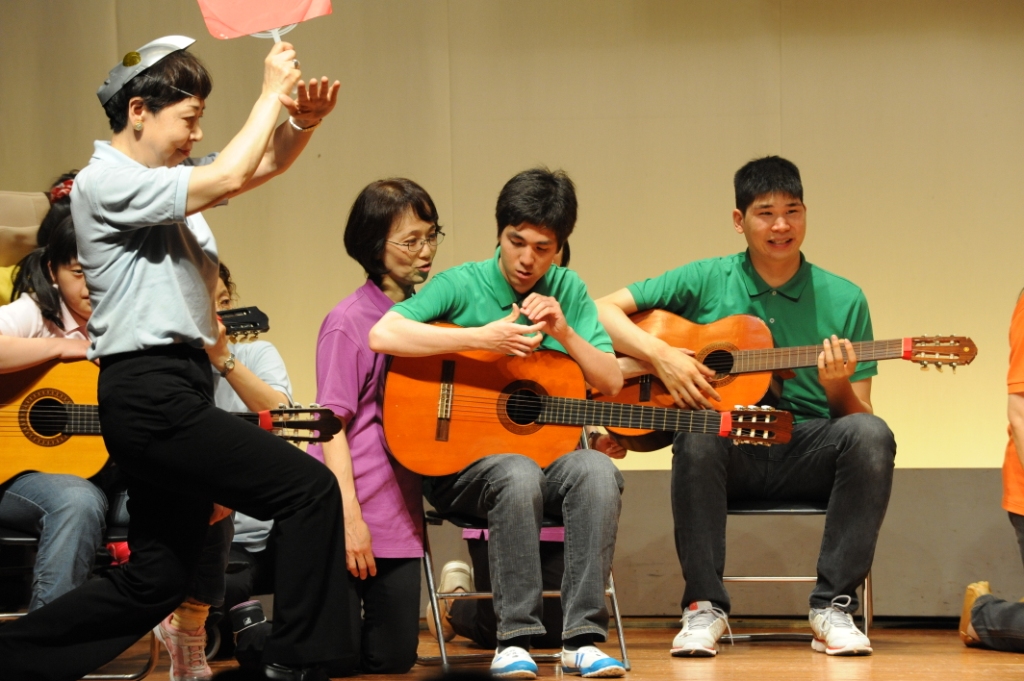 | 独唱「荒城の月」 3題目までしっかり覚えました | 盛り上がったギター演奏 | チャマリの紹介 長い髪とオサリーが印象的 |