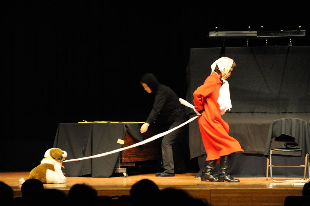 | 「お菓子と娘」 パリジェンヌが犬と散歩!? | 受付は、金沢大学の学生達が手伝ってくれました | 会場と一体となって 腰を伸ばしました?? |
