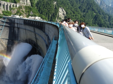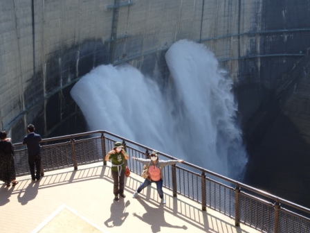 | 下を見ると吸い込まれそう! | 黒部ダムの上で | すごい! 放水の迫力 |