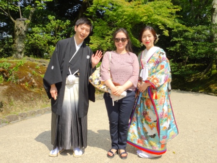| 兼六園:霞ケ池と徽軫灯籠(ことじとうろう) | 花嫁衣装の新婚のカップルと記念写真 | 金沢城 |