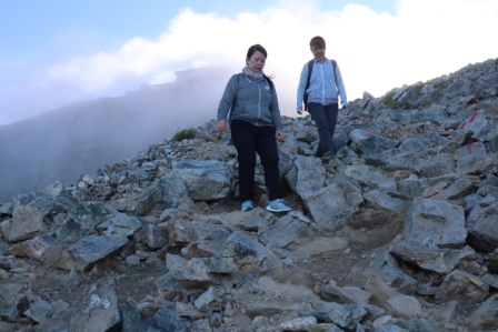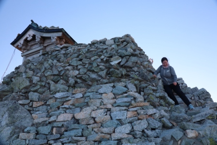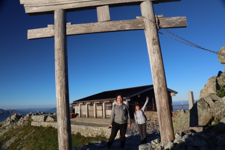 | 雄山の社務所と鳥居 | 雄山頂上は、私達の貸切!! | 頂上の下りは、慎重に |